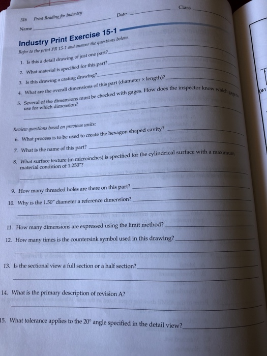 Solved Print Reading For Industry 212 Date Name Industry Chegg Com